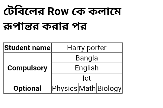 টেবিলের সারিকে কলামে রূপান্তর করার পর