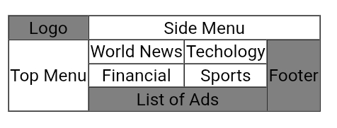 <td bgcolor="gray">Logo</td><td colspan="3">Side Menu</td></tr>