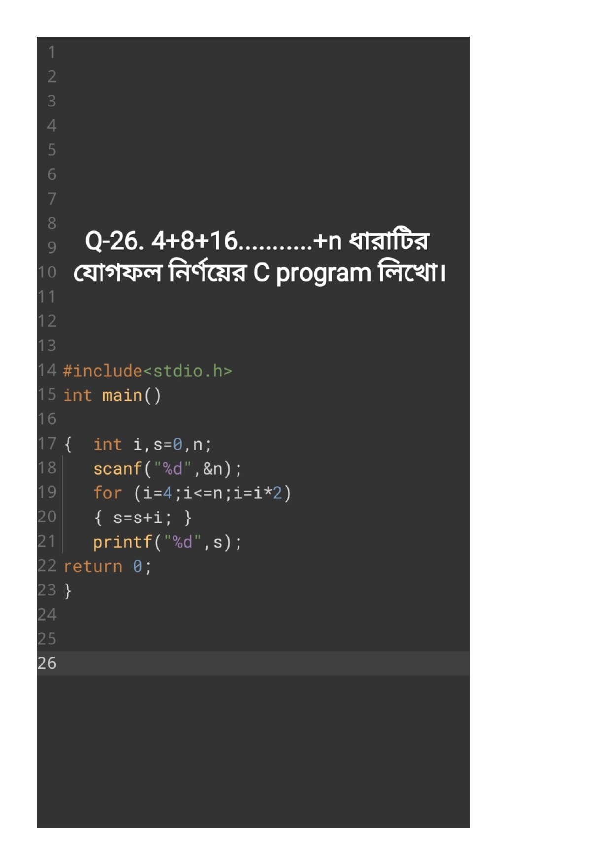 4+8+16+........+n āϧāĻžāϰāĻžāĻāĻŋāϰ āϝā§āĻāĻĢāϞ āύāĻŋāϰā§āĻŖāϝāĻŧā§āϰ āϏāĻŋ āĻĒā§āϰā§āĻā§āϰāĻžāĻŽ āϞāĻŋāĻ